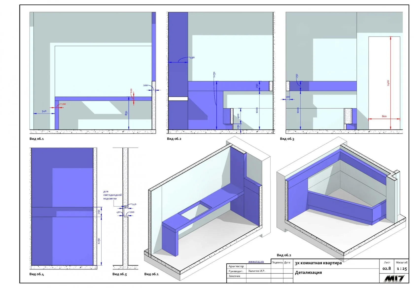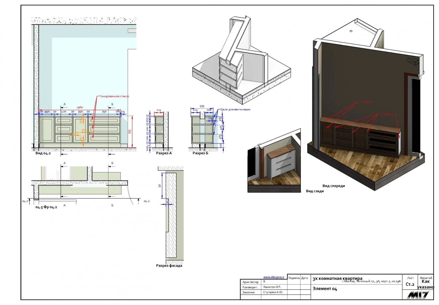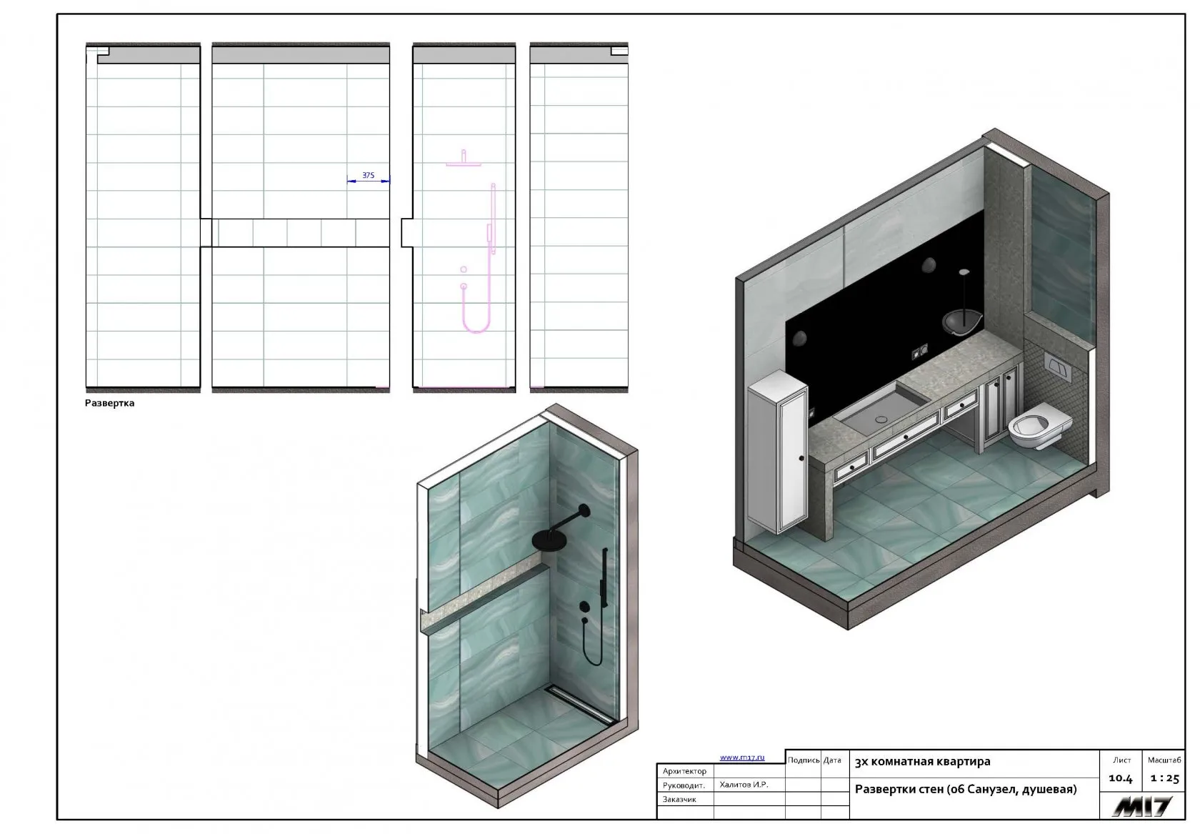 Подробные планы и развёртки дополняются аксонометрическими видами, чтобы исключить ошибки исполнителей даже с невысокой квалификацией.